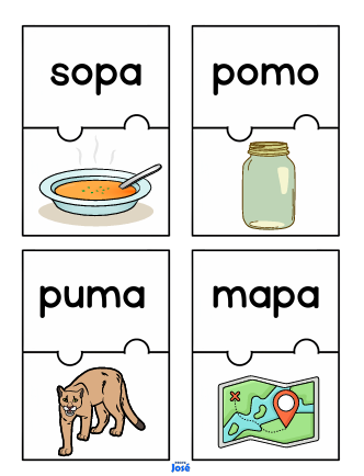 Material didáctico con 160 rompecabezas de palabras diseñados para fortalecer la lectura y el reconocimiento de vocabulario en niños de educación primaria. Cada actividad permite que los estudiantes unan las piezas del rompecabezas para formar la palabra correcta y asociarla con su imagen, favoreciendo la comprensión y la alfabetización temprana.