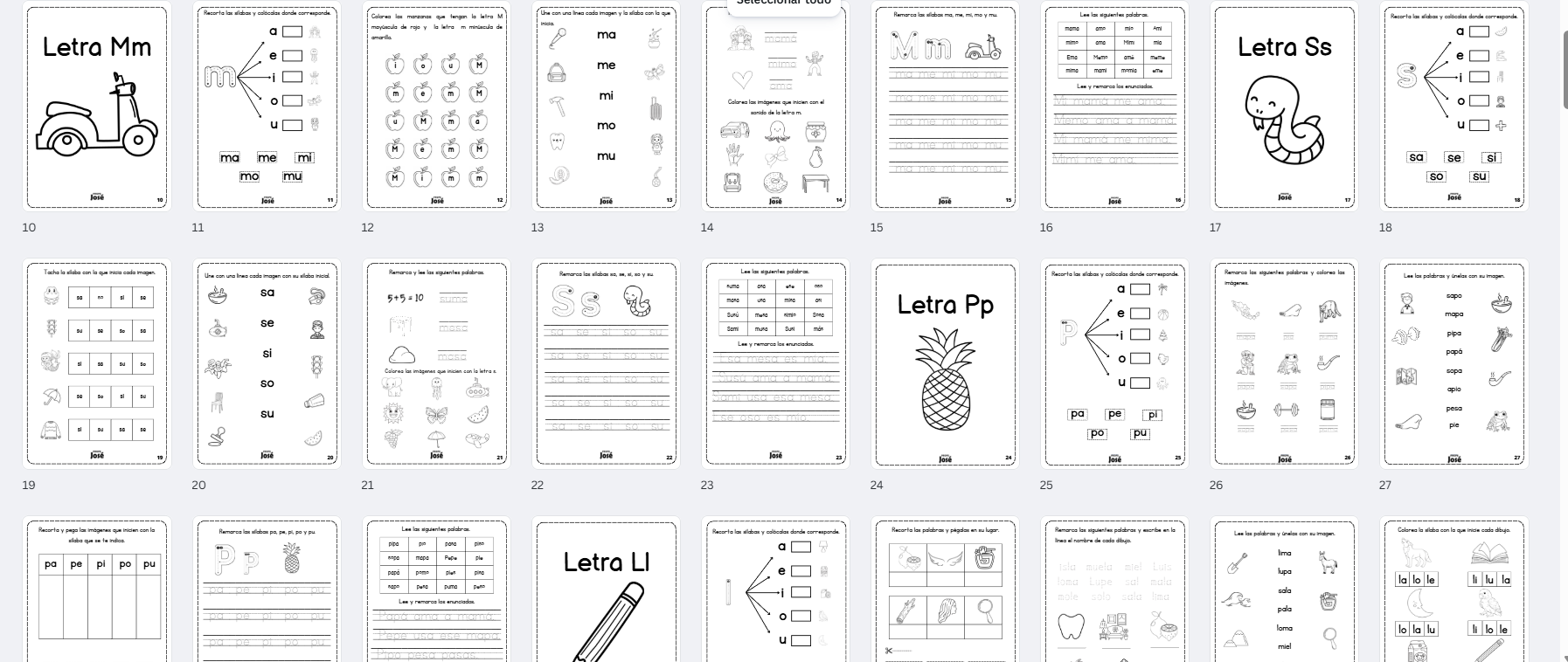 Este recurso trabaja de forma progresiva desde las vocales, la formación de sílabas directas (ma, me, mi, mo, mu), hasta la lectura de palabras y oraciones simples, fortaleciendo la conciencia fonológica, la escritura y la comprensión lectora inicial.